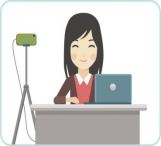 (3)网络远程复试前按要求安装调试好设备。考生端两台设备开启摄像头,电脑摄像头对准考生本人,手机摄像头从考生后方成45°拍摄,如下图所示,要保证考生考试屏幕能清晰地被复试专家组看到。
