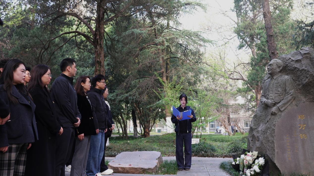 时值郑万钧院士诞辰122周年暨"活化石"水杉发现命名78周年之际,为深切追思林业先驱,赓续水杉精魂,4月1日清晨,南京林业大学林草学院、水土保持学院师生代表齐聚郑万钧院士雕像前,举行庄严肃穆的祭扫活动。学院党委书记唐萍,学院党委副书记、副院长吴淳,学院全体思政辅导员,"碧水青山"传习社成员,学院学生党员、入党积极分子、团员代表出席了此次仪式活动。